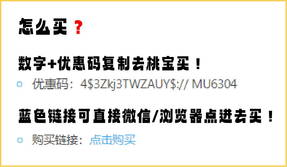 优惠码:6$7B1H3OjbqRI$:// CZ6135(复制优惠码,打开淘宝即可)